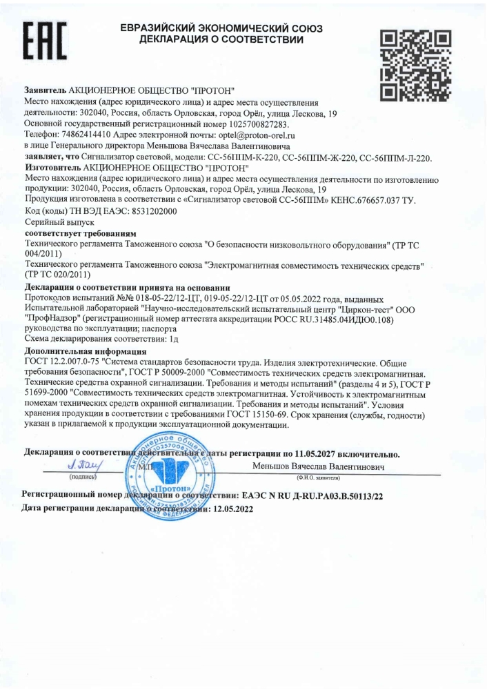ЕАЭС N RU Д-RU.РА03.В.50234/22